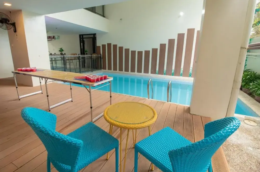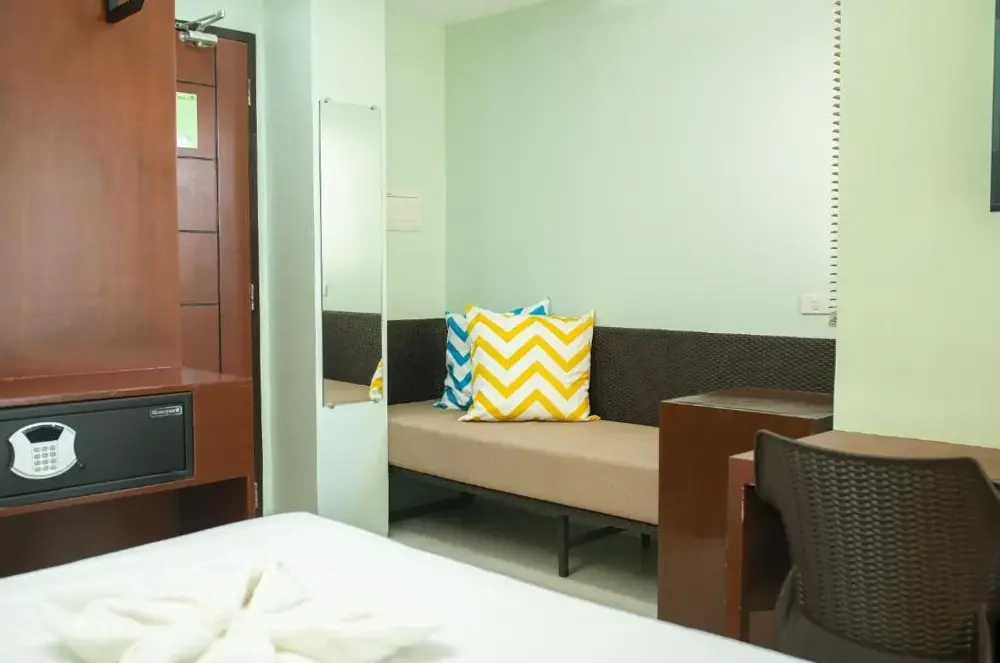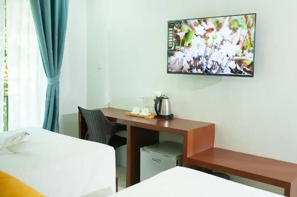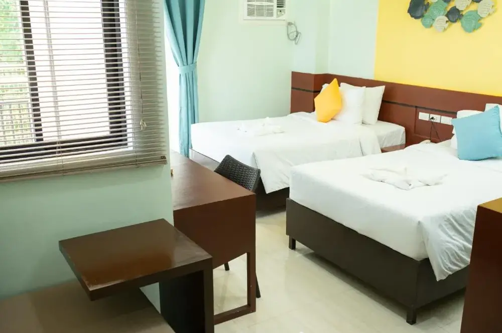 Masarap ang almusal IDK bakit pero nakakuha ako ng dbl breakfast option araw-araw na kumakain ako doon. Para sa tulad ng 20usd isang gabi ito ay isang magandang halaga ng hotel marahil ilang mga langgam at tuko ngunit ito ay 20 USD sa isang gabi ang kama ay isang kama ang shower ay tumatakbo ang toilet flushed gumagana ang AC. Para sa isang kurot, mabuti kung gagawin mo ang tamang boracay solo budget travel. Ang isang ito ay mabuti. Walang pakialam ang mga lady boys kung ano ang itsura ng kwarto. Malapit sa magkabilang beach side ng isla at sa lahat ng bar. Pati ang front desk na lalaki ay may pinaka-cute na aso, dinala ako sa aking silid, umupo sa pintuan at tumahol na parang nagsasabing 'welcome to boracay enjoy " hindi ko kayang lagyan ng presyo iyon.